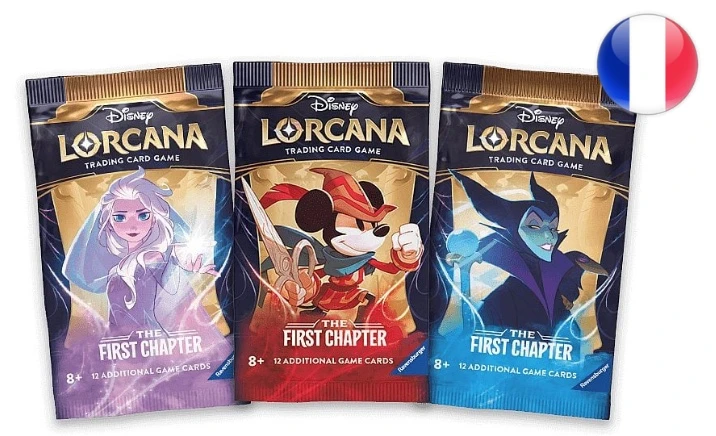 | Autres | Modèle aléatoireContrairement aux decks de démarrage, les boosters contiennent douze cartes aléatoires de Disney Lorcana : Premier Chapitre. Utilisez les boosters pour construire et personnaliser votre deck avec des capacités et des personnages qui ne se trouvent pas dans les decks de démarrage.Chaque booster contient douze cartes aléatoires :6 cartes commune3 cartes inhabituelle2 cartes rare, très rare, ou légendaire 1 carte brillante (niveau de rareté aléatoire)Version Française |